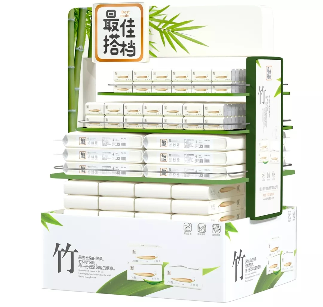 品牌終端視覺體系構(gòu)建——“最佳搭檔”銷售場景一針見血,直擊產(chǎn)品主訴求的“竹”元素,將一片竹林“搬到現(xiàn)場”,賦予所有產(chǎn)品陳列顯著的現(xiàn)場感,有助于提升終端體驗。
