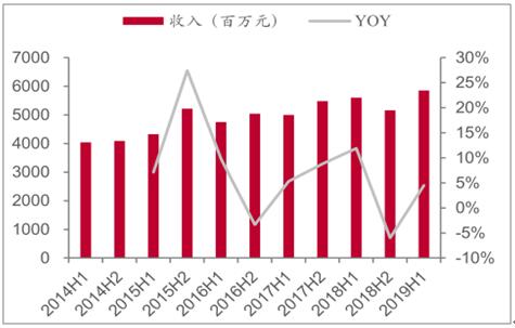 2015-2019年上半年維達國際收入及變動趨勢