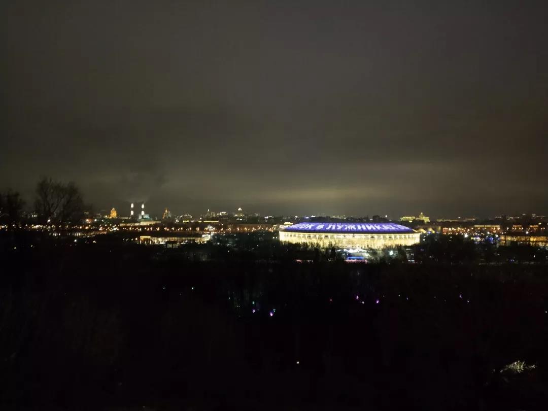 麻雀山頂極目遠眺,望不盡繁華與典雅,巍巍白樺,裊裊浮云,熠熠燈火,在現(xiàn)代與古典中演繹著莫斯科的前世今生,有歷史的厚重感,有蒼生的寫實感,都在闌珊之際拓印出它應(yīng)有的輪廓。莫斯科國立大學(xué)莊嚴肅穆地聳立著,作為莫斯科七座斯大林式建筑之一,其大底座高尖頂?shù)奶厣滞庑涯浚谝鼓缓蜔艄獾妮x映下?lián)纹鹆藲鈩?,展現(xiàn)出最高學(xué)府的極度自信。