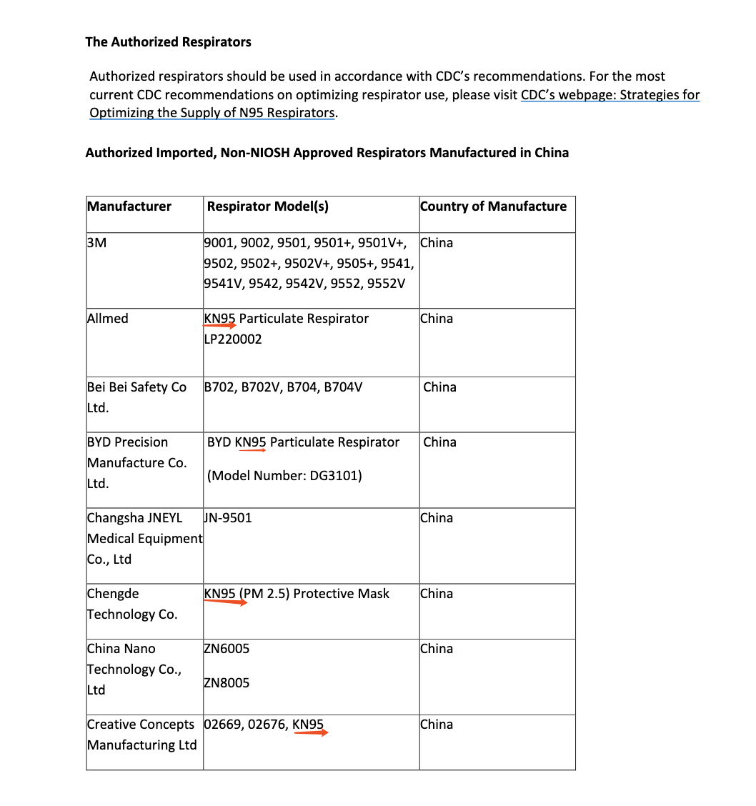 文件顯示,在這些獲得緊急使用授權(quán)的企業(yè)中,使用中國(guó)KN95標(biāo)準(zhǔn)生產(chǎn)口罩的達(dá)到26家。