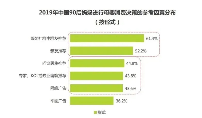在認(rèn)知-消費-決策的思考環(huán)節(jié)中,65.3%的90后小城新媽信賴專業(yè)人士背書,會受到專家、KOL、專業(yè)編輯等知識型內(nèi)容推薦吸引而進(jìn)行購買