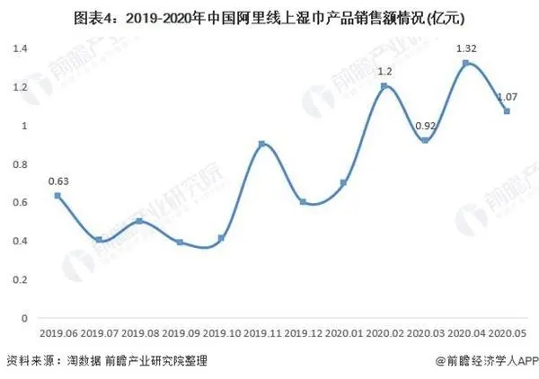 另一方面,2019年底全國(guó)疫情的爆發(fā)極大地刺激了濕巾的消費(fèi)需求。2020年1-5月,阿里濕巾線上銷售額均在1億元左右,2020年4月銷售額更是高達(dá)1.32億元,2020年2月環(huán)比增速達(dá)到113.63%。此次“新冠疫情”較2003年非典更加嚴(yán)重,進(jìn)一步激化了國(guó)人對(duì)衛(wèi)生健康的關(guān)注。同時(shí),隨著我國(guó)經(jīng)濟(jì)積極向好,居民消費(fèi)能力及意愿不斷提升,企業(yè)不斷探索制造多元化的濕巾,后疫情時(shí)代我國(guó)濕巾行業(yè)發(fā)展前景更為明朗,預(yù)計(jì)2025年市場(chǎng)規(guī)模有望達(dá)到182億元。