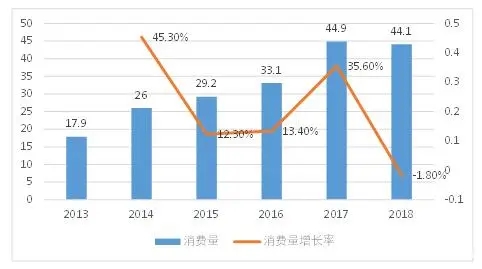 從消費(fèi)量來看,2013年以來,我國成人失禁用品的消費(fèi)量增長較為迅速,從2013年的 17.9億片增加至2018年的44.1億片,年均復(fù)合增長率達(dá)到19.8%。