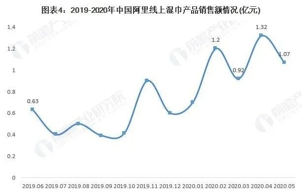 2020年疫情呈現(xiàn)爆發(fā)極大地刺激了濕巾的消費需求,2020年1-5月,阿里濕巾線上銷售額均在1億元左右,2020年4月銷售額更是高達1.32億元,2020年2月環(huán)比增速達到113.63%。