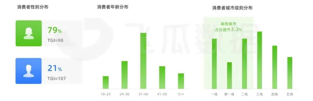 從用戶層面,目前女性群體仍是抖音生活用紙品類的主力消費人群,占比接近8成,且年齡多集中在31-40歲區(qū)間。
